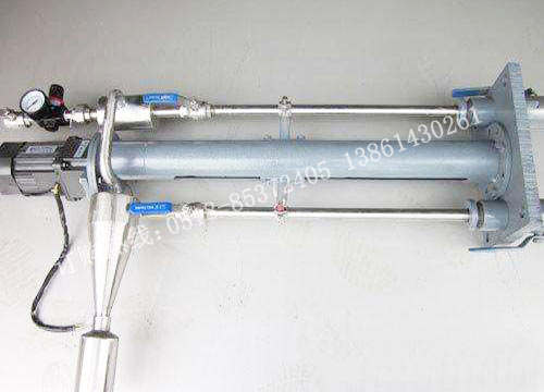 該伸縮式煤粉取樣器是利用壓縮空氣為動力,使取樣管、分離器、取樣瓶產(chǎn)生負壓來抽吸煤粉達到取樣目的,并可利用壓縮空氣吹掃取樣管避免取樣管堵塞的問題。設(shè)備上備有壓縮空氣調(diào)壓閥,可通過該閥調(diào)整壓縮空氣的壓力、流量來控制取樣速度和實現(xiàn)等速取樣。使取出的煤粉具有代表性。取樣管采用伸縮式設(shè)計,采用螺桿驅(qū)動取樣管,不工作時取樣管退出煤粉管道外,避開煤粉氣流對取樣管的沖刷,大幅度的提高取樣管的使用壽命。