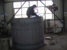 | 除氧器生產(chǎn)現(xiàn)場(chǎng)圖 | 采用焊接方法噴霧填料式除氧器改造 |