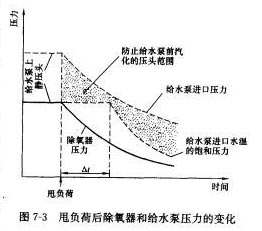 圖7-3所示為甩負(fù)荷后除氣器和給水泵進口(吸人側(cè))壓力的變化情況。